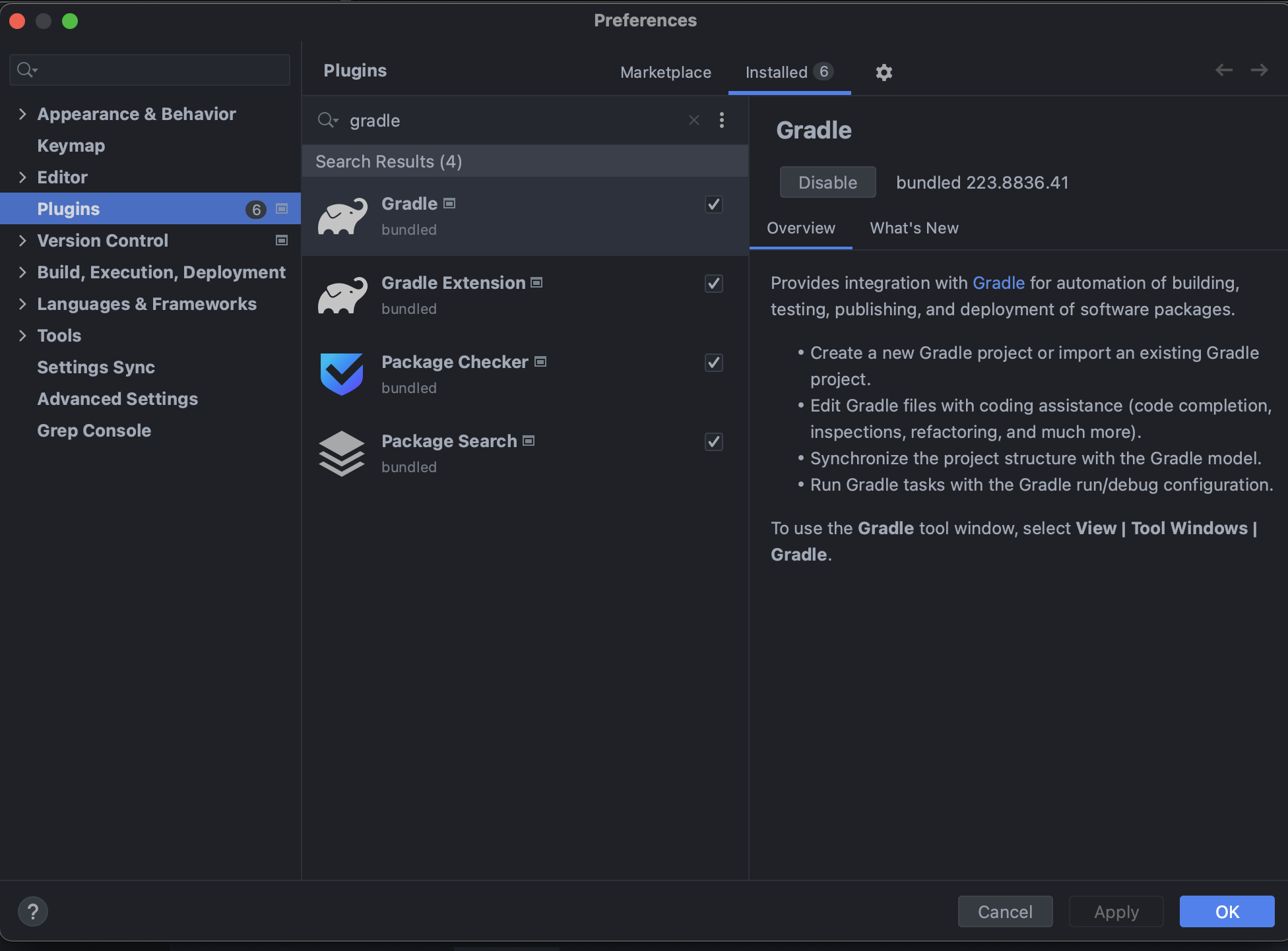 그래들 플러그인을 재설치한다 - 이후 재시작