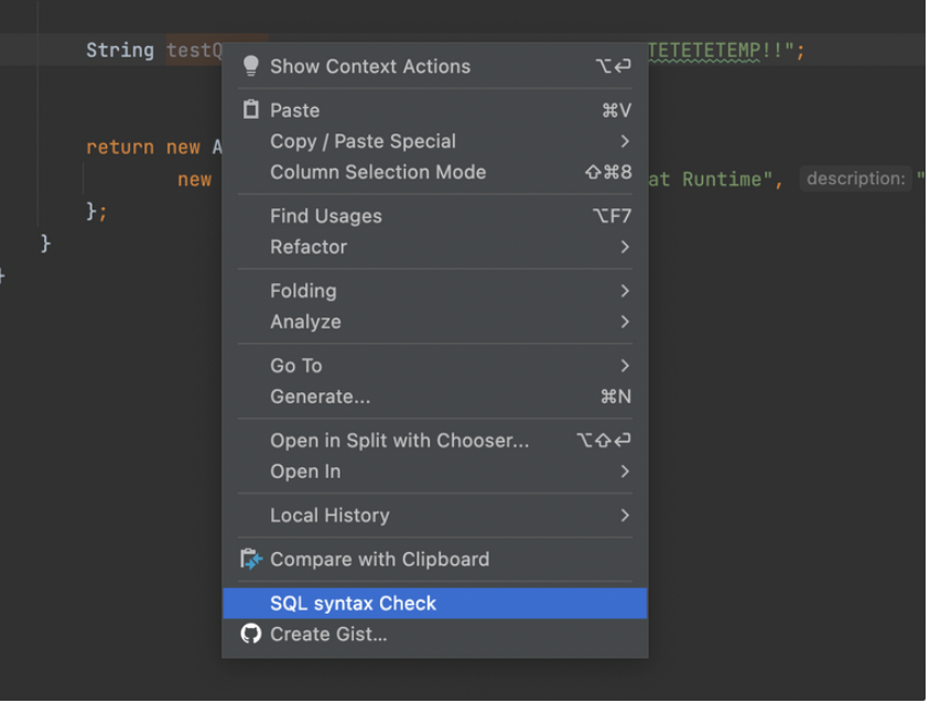 sql syntax 검증 코드를 추가하고 플러그인을 테스트를 해보았다.