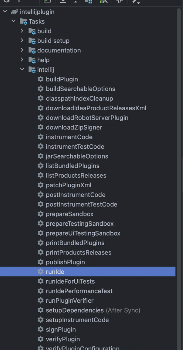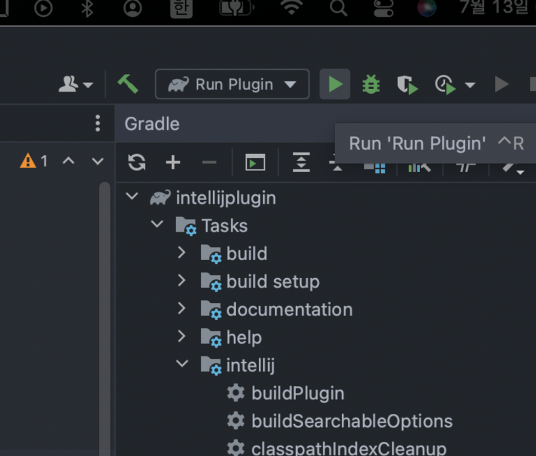 처음이라 당황했는데, 플러그인을 테스트하는것이라서인지 Intellij 툴을 실행하는 것처럼 보인다.