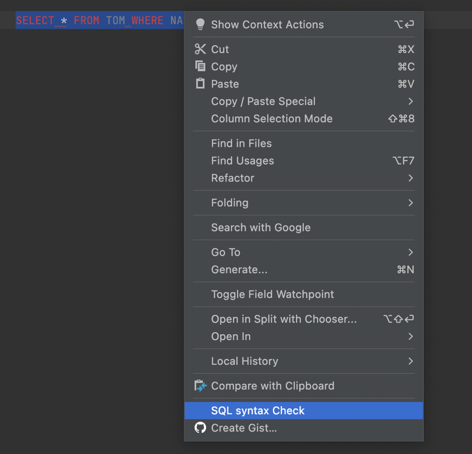 <action id="SqlSyntaxChecker" class="SqlSyntaxChecker" text="SQL syntax Check" description="SQL syntax Check">