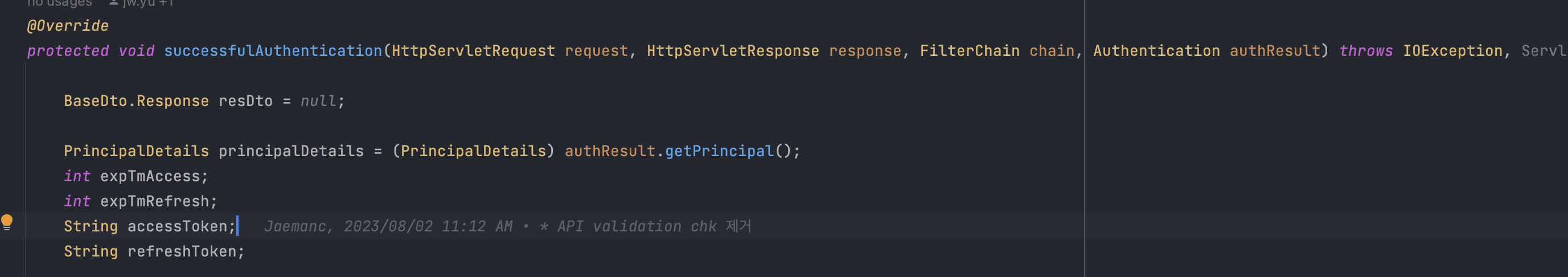๐ค ์ ๊ณผ์ ์์AuthenticationManager๋ฅผ ํตํ ๋ก๊ทธ์ธ ์๋๋ UserDetailService๋ฅผ ์์๋ฐ์ PrincipalDetailService๋ฅผ ํธ์ถํ๊ณ ,