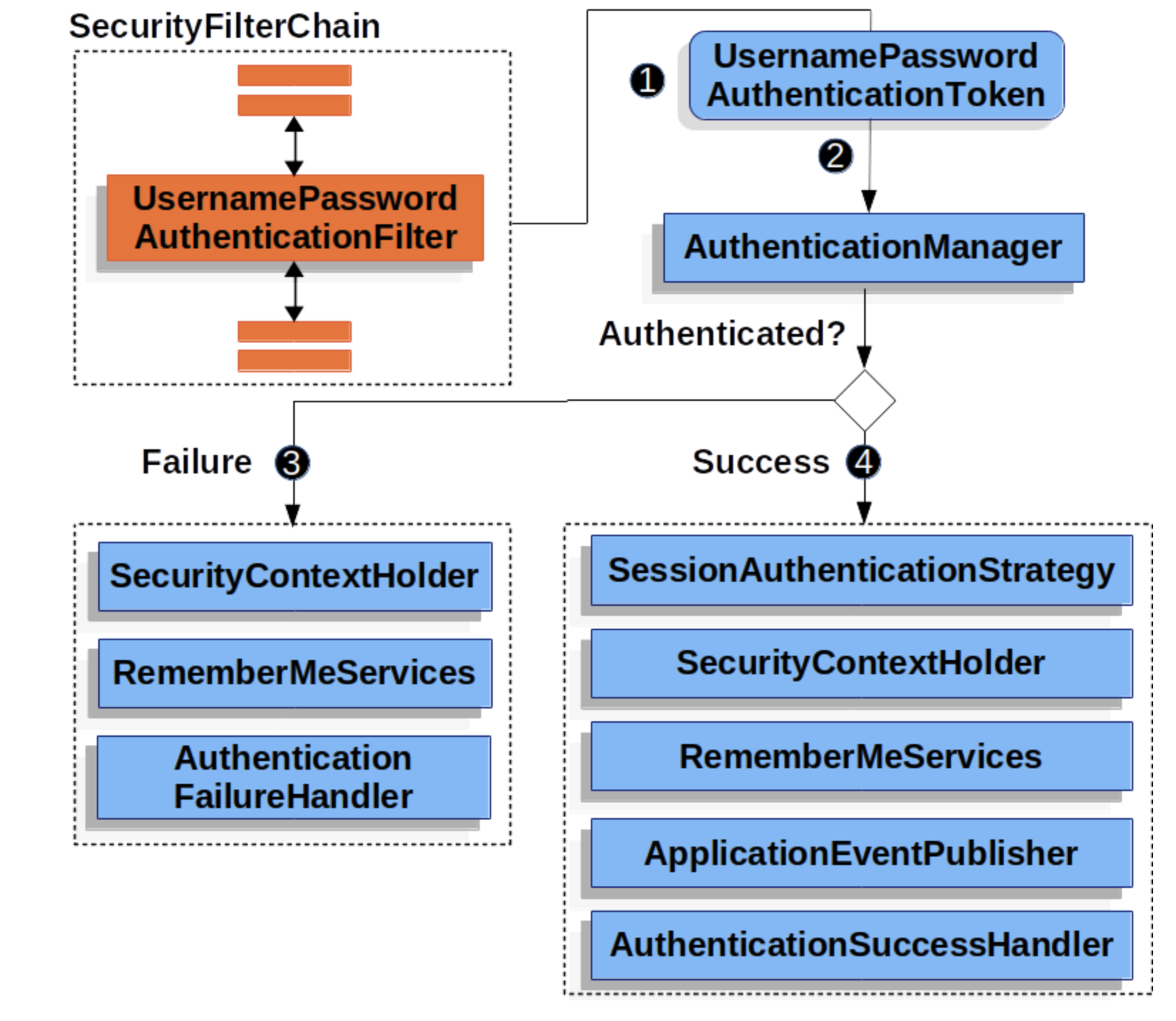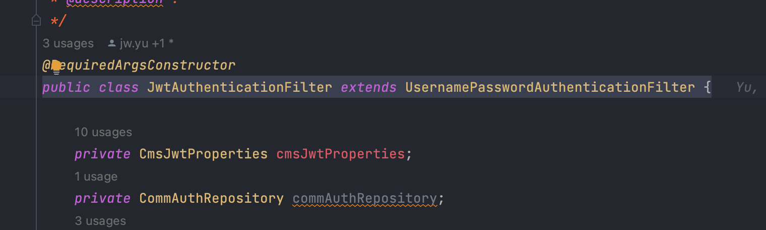 ์ ๊ฐ์ด UsernamePasswordAuthenticationFilter๋ฅผ ํ์ฅํ๊ณ ์๋ค.
