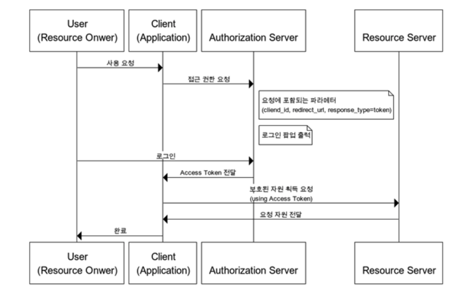 ์์ ๊ฐ์ ๋ฐฉ์ ์ธ์๋ ์๋ฌต์ ์น์ธ ๋ฐฉ์์ด ์๋ค. ๊ถํ ๋ถ์ฌ ์น์ธ ์ฝ๋ ์์ด ๋ฐ๋ก Access Token์ด ๋ฐ๊ธ๋๋ ๋ฐฉ์์ด๋ฉฐ, ๋ง๋ฃ๊ธฐ๊ฐ์ ์งง๊ฒ ์ค์ ํ์ฌ ๋์ถ ์ํ์ ์ค์ผ ํ์๊ฐ ์๋ค๊ณ ํ๋ค. - ๊ถ์ฅํ์ง ์๋ ๋ฐฉ์.