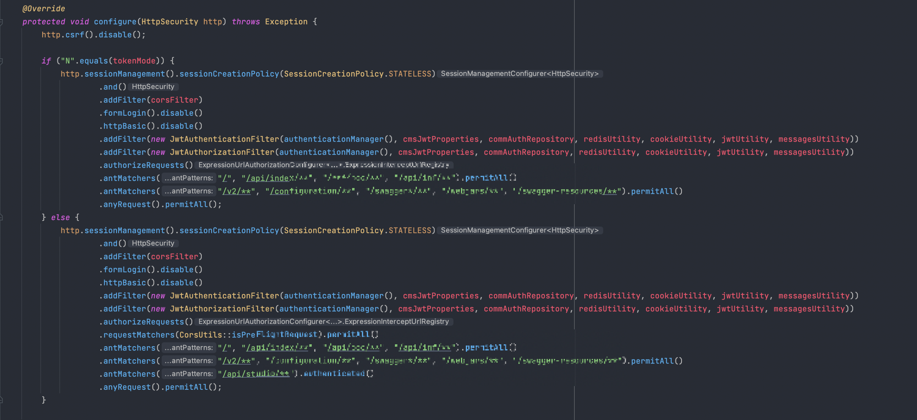 ๐ค ์ด๋ฒ ํน์ target API ์ธ์ฆ ์ ๊ฑฐ ์์ ์ ๋ฌธ์ ๊ฐ ๋์๋ ๋ถ๋ถ์ ๊ฑฐ์ ๋๋ถ๋ถ์ API์ ์์์ง์ ์ธ /API/Studio/**์ ๋ถ๋ถ์ด๋ค.