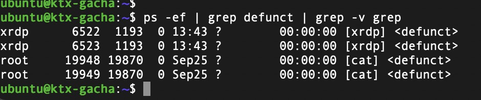 $ ps -ef | grep defunct | grep -v grep