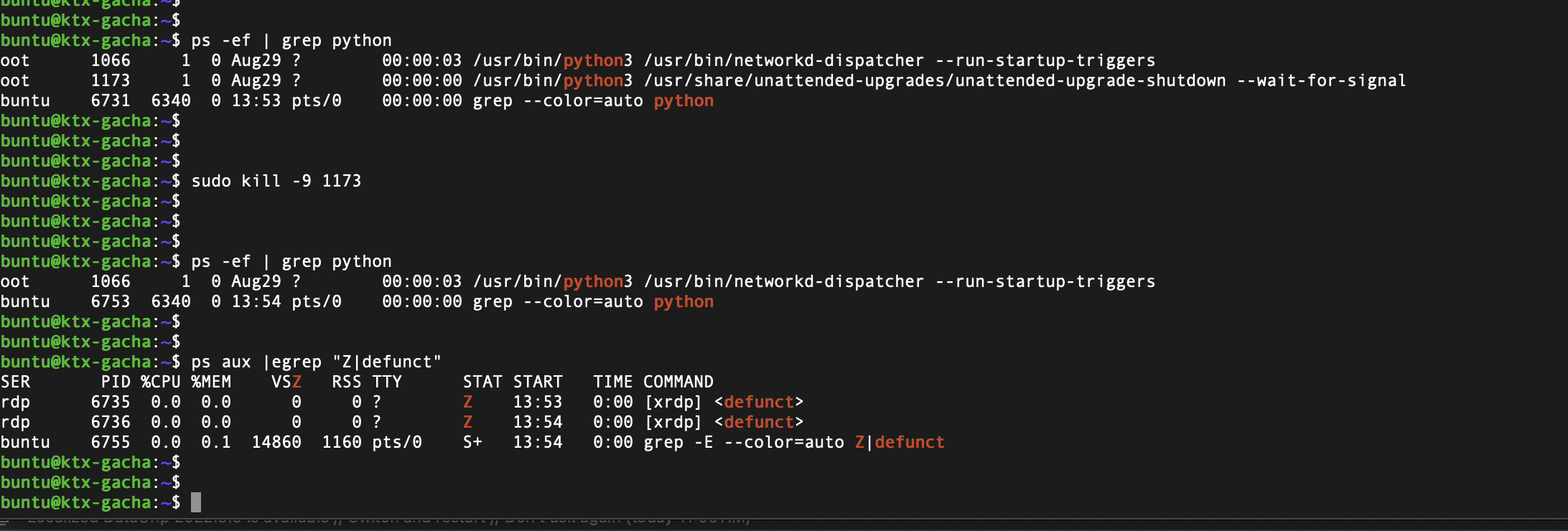 $ ps aux |egrep "Z|defunct"