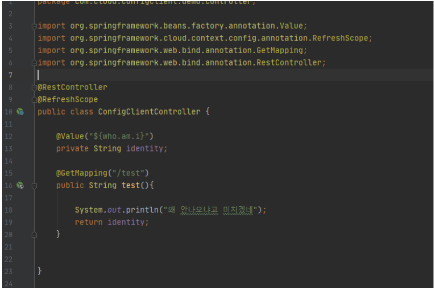 @RefreshScope λ³κ²½μ¬νμ λ°μμμΌ νλ―λ‘,