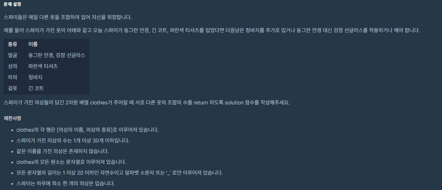 ✍ 옷의 가지수를 계산해서, map 타입에 ( key(의상종류) , value(개수) )를 넣어야 할 것이라고, 생각했지만