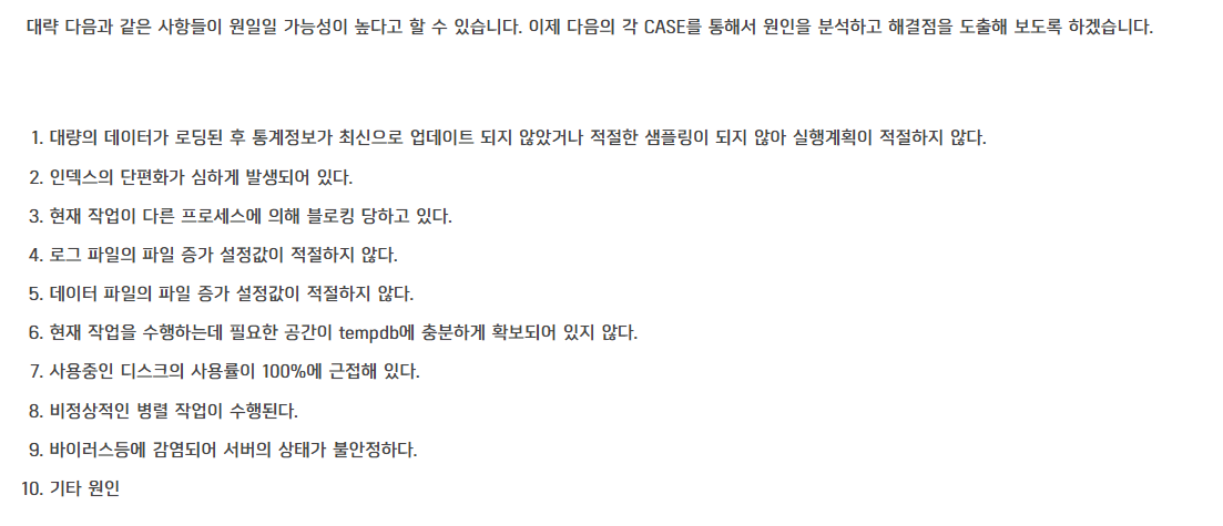 ☁ 쿼리가 갑자기 느려지는 경우는 아래와 같이 생길 수 있다고 한다.