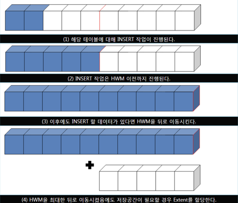 1. 애초에 TABLE을 TRUNCATE 또는 DROP 처리해서, HWM 정보를 초기화해야한다.