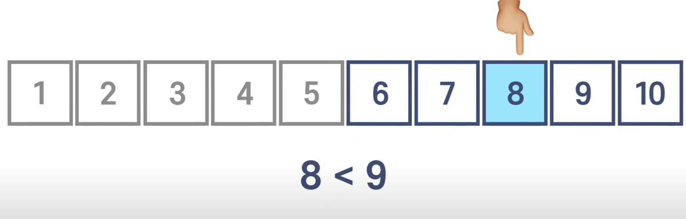 8이 9보다 작으니까 오른쪽배열을 찾는다. ( 반복 )