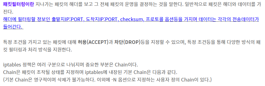 😒 iptables는 리눅스 상에서 방화벽을 설정하는 도구이다.