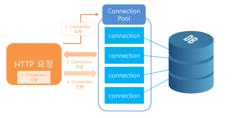 Connection을 미리 만들고 Connection pool 에 두었다가 사용자의 요청이 발생할 경우 Connection을 제공하고,