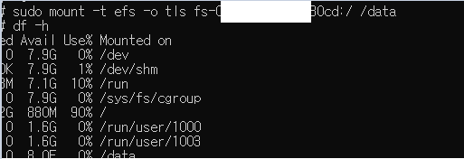 $ sudo mount -t efs -o tls fs-0144444444444:/ /data