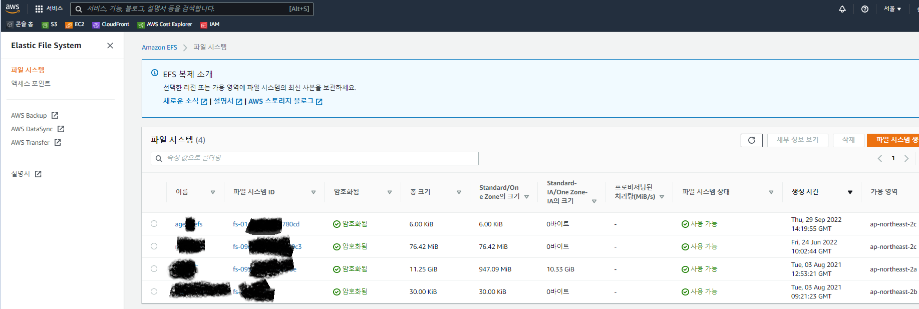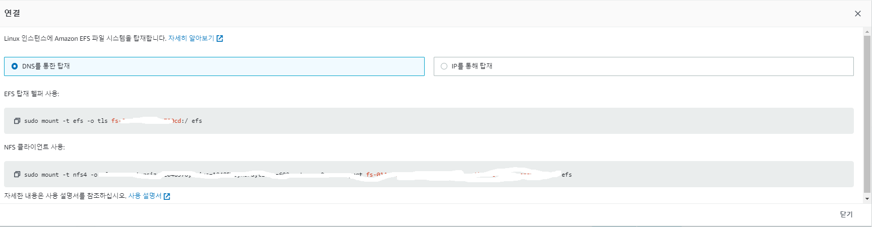 EC2 인스턴스의 공간이 부족해서 EFS를 새로 마운트 하려한다.