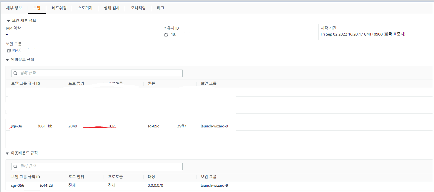 마운트하고자하는 EC2 인스턴스에서 네트워크 - 보안 탭의 인바운드 규칙을 편집한다.