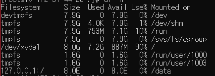 마운트가 잘 되었다는 성공 메세지는 나타나지 않으므로,
