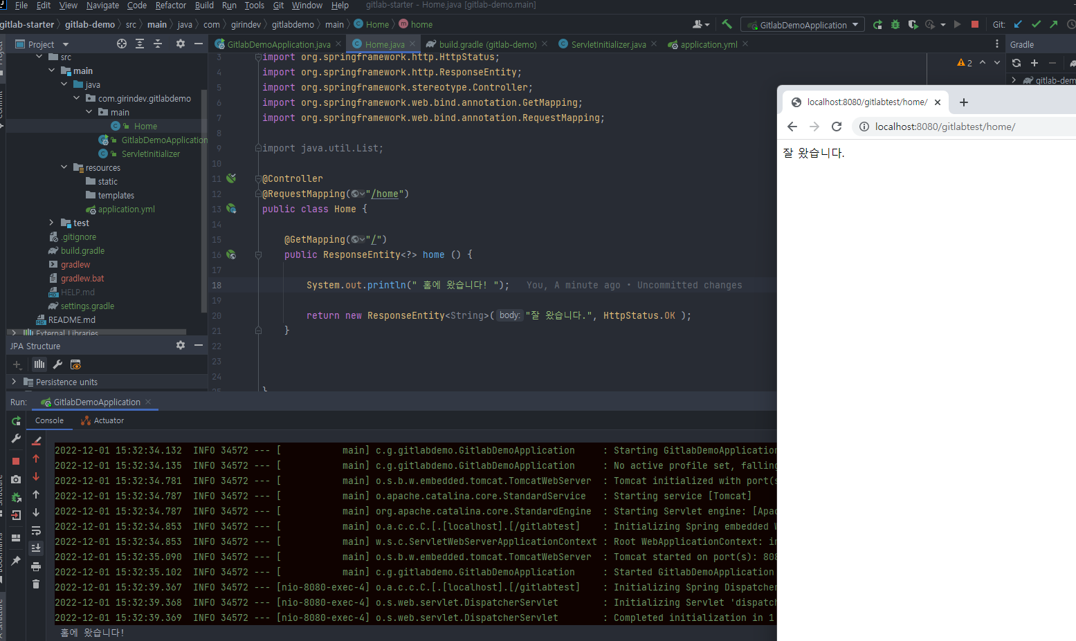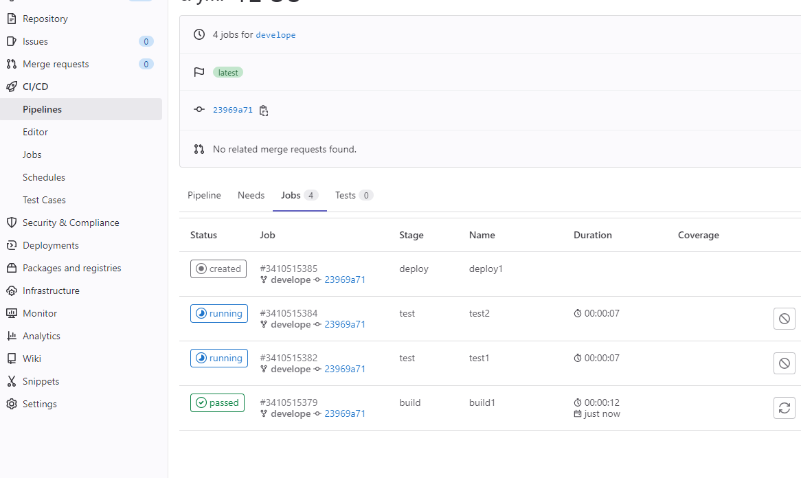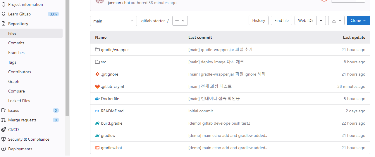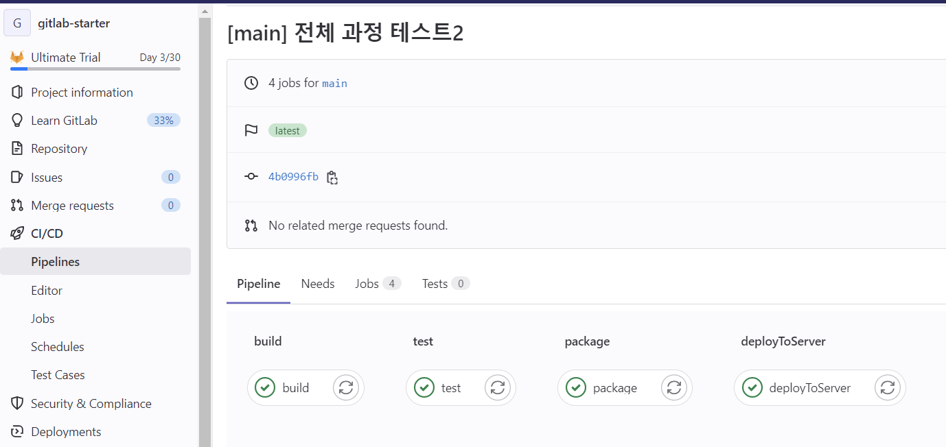 생성 했다면 다음과 같이 CI 파이프라인이 실행되는 지 테스트 할 수 있다.