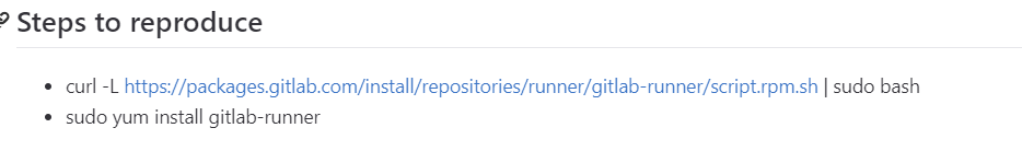 $ curl -L "https://packages.gitlab.com/install/repositories/runner/gitlab-runner/script.rpm.sh" | sudo bash