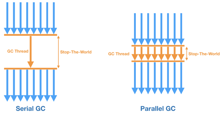 - STW가 발생하면, 가비지 컬렉터를 실행하는 쓰레드를 제외하고 나머지 쓰레드는 모두 작업이 중단된다.