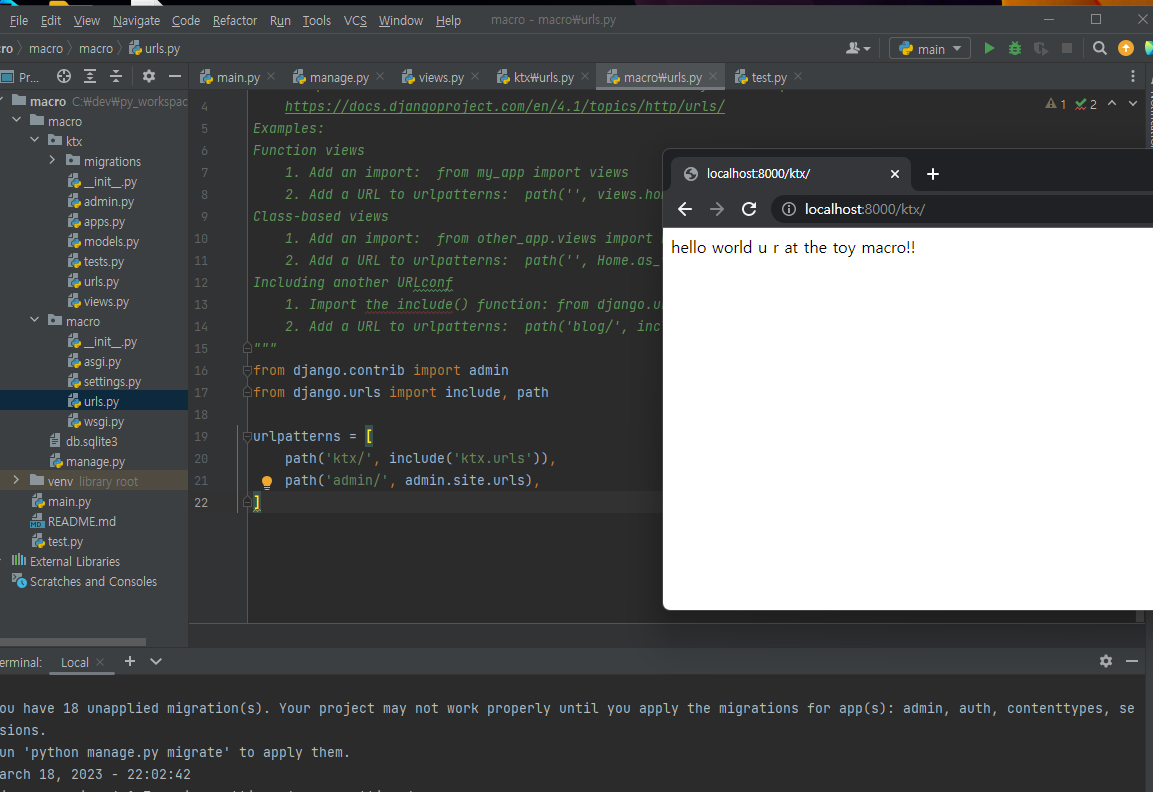 환경 : pycharm + python 3.8.1 + django 4.1.7 + window 11