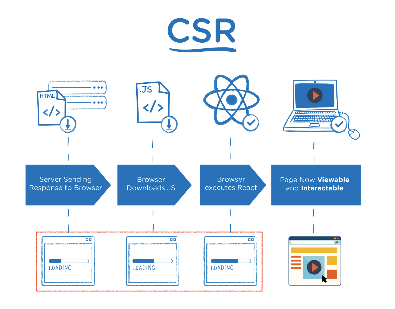 - μλ²μ λΆν λ°μ κ°λ₯. μλ²μμ HTMLμ λ λλ§ ν΄μΌ νλ―λ‘, μ΄κΈ° ꡬν μκ°μ΄ μ€λ 걸릴 μ μμ.