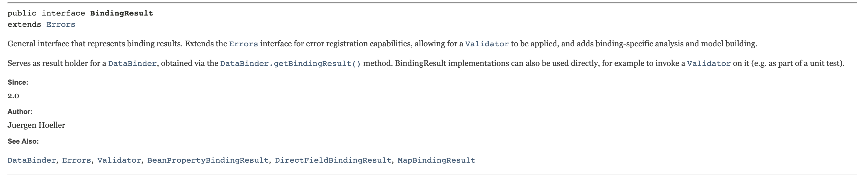 스프링 공식문서의 설명에 따르면, 바인딩 결과를 나타내는 것으로,