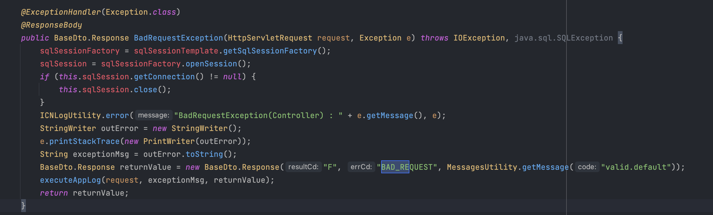 * Exception Handler 를 통한 리턴이 아니라면 클라이언트는 400 BadRequestException을 리턴받게 된다.