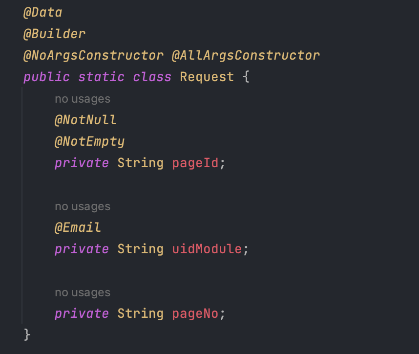 여기서는 억지로 @Email 어노테이션을 걸고, 유효성 검증이 어떻게 이루어지는지만 확인한다.